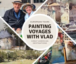A unique 11-night art workshop/art tour open to artists of all levels and media (oils, acrylics, watercolors, etc.). June 25 - July 6, 2026